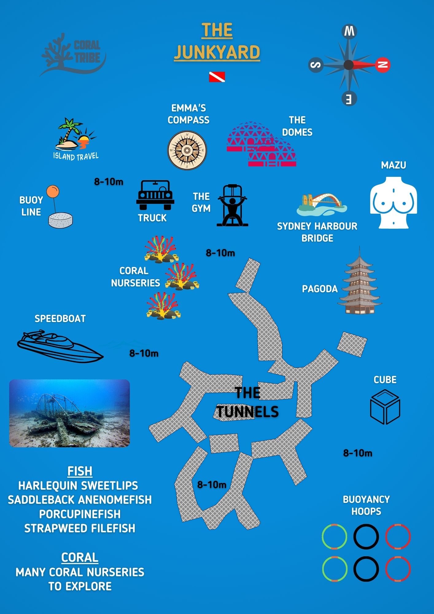 Junkyard is a completely unique dive site that was created using recycled and upcycled junk materials and trash to make structures for divers to explore. Junkyard is located just a few hundred metres off the beach in Mae Haad Bay. Since its inception, Junkyard has continued to grow year on year, with additional structures being added to increase the size and diversity of the site. Stand out pieces of underwater art made out of various pieces of junk include a set of pyramids, a windmill, a car, a toilet sculpture, and a replica of the Sydney harbour bridge. What is so great about Junkyard is that all of the installations act as shelter and homes for marine life, while also providing structures that are suitable for transplanting and growing new corals. There is a whole host of fish at Junkyard that you will hardly see anywhere else on the island, including strapweed filefish, juvenile harlequin sweetlips, pipefish, boxfish, and saddleback anemonefish.